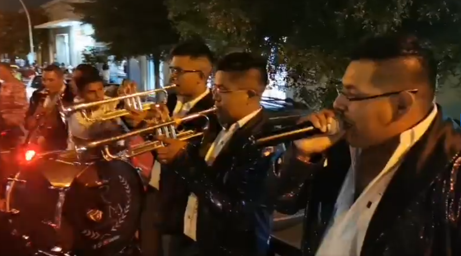 Eso sí, la banda no faltó. Los integrantes del grupo musical todos iban dentro de un solo remolque. Aglomerados, gritándole y compartiéndose un micrófono. Acción que podría compartir con facilidad partículas de saliva, donde podría estar el virus en caso de que hubiera un contagio.