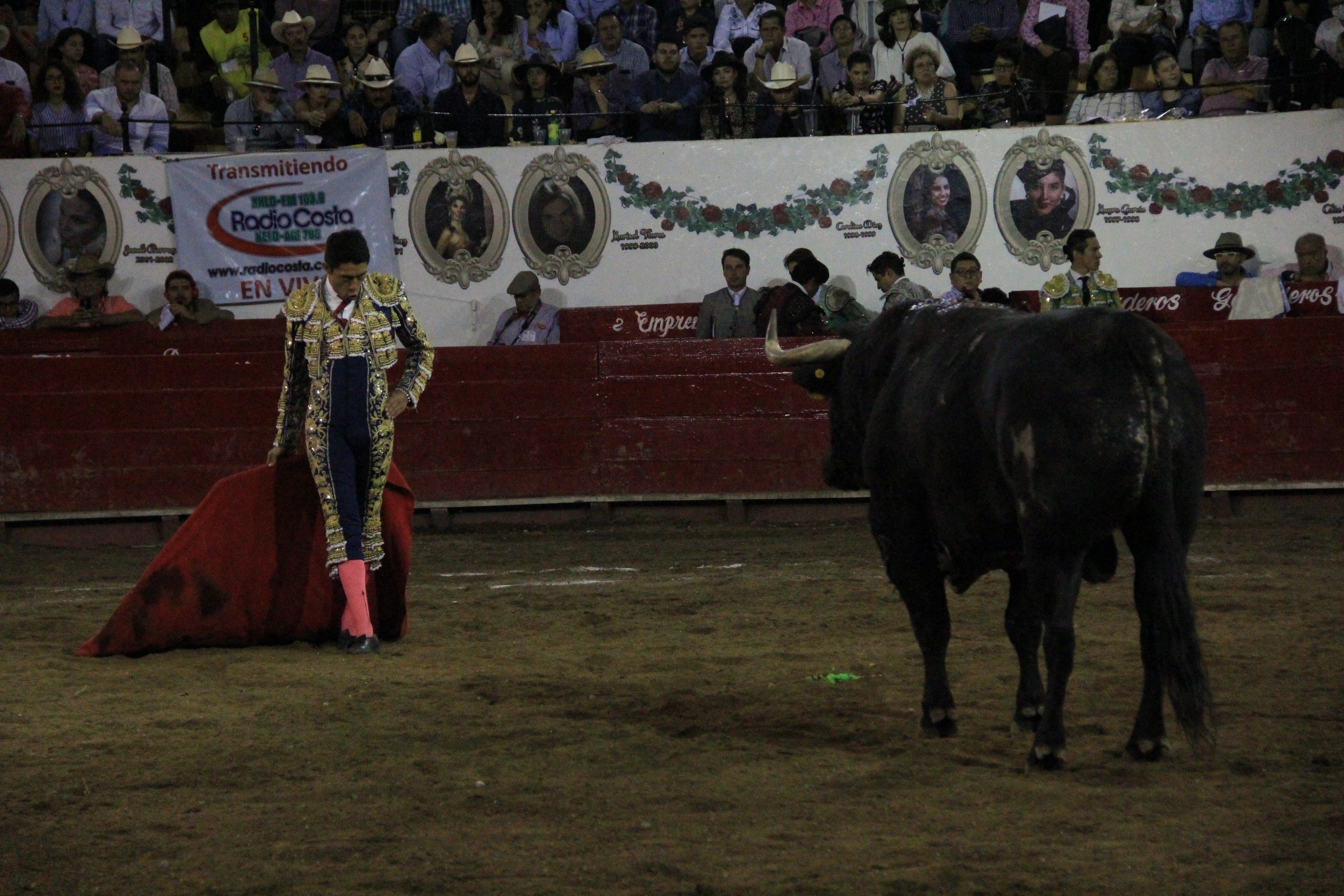 Sergio Flores (azul noche y oro): División tras aviso y oreja tras aviso.