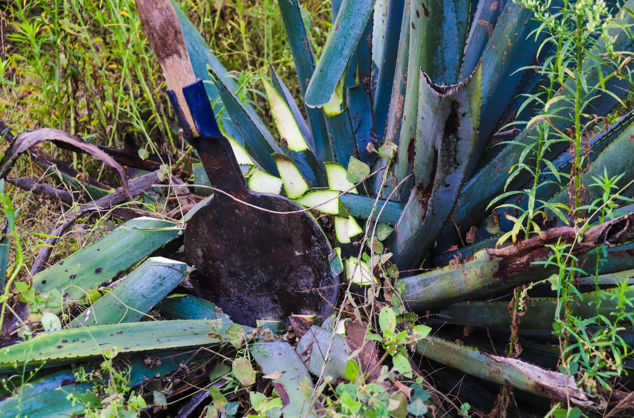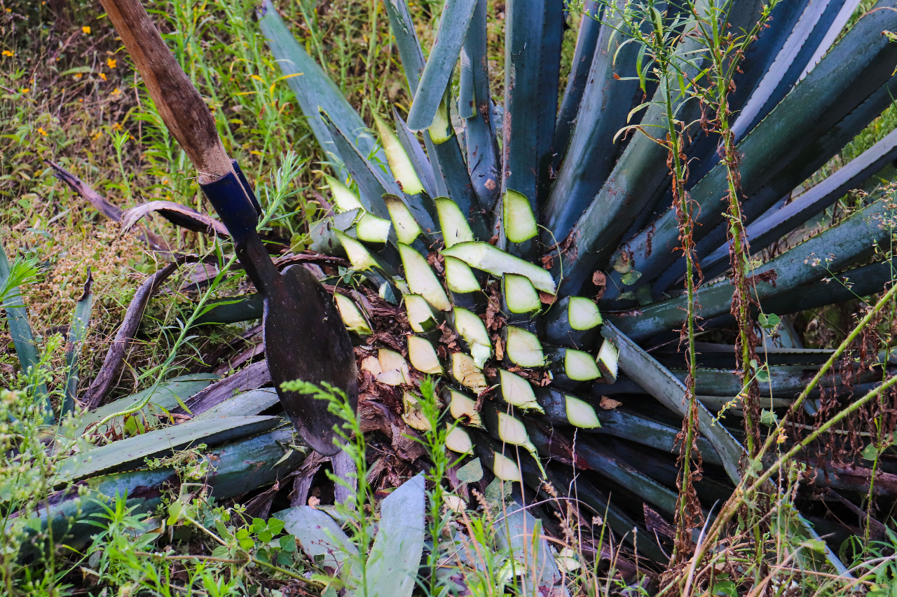 “Barriga llena, corazón contento”. Ya con la energía suficiente, comienzan a preparar la herramienta y las coas, que son palos de madera con una punta redonda de acero, tan afilada como un cuchillo, tienen forma de pala y se utilizan para desprender o cortar las pencas del agave. “Hay que despuntar la planta punta por punta, hasta que tienes la piña completamente pelada”.
