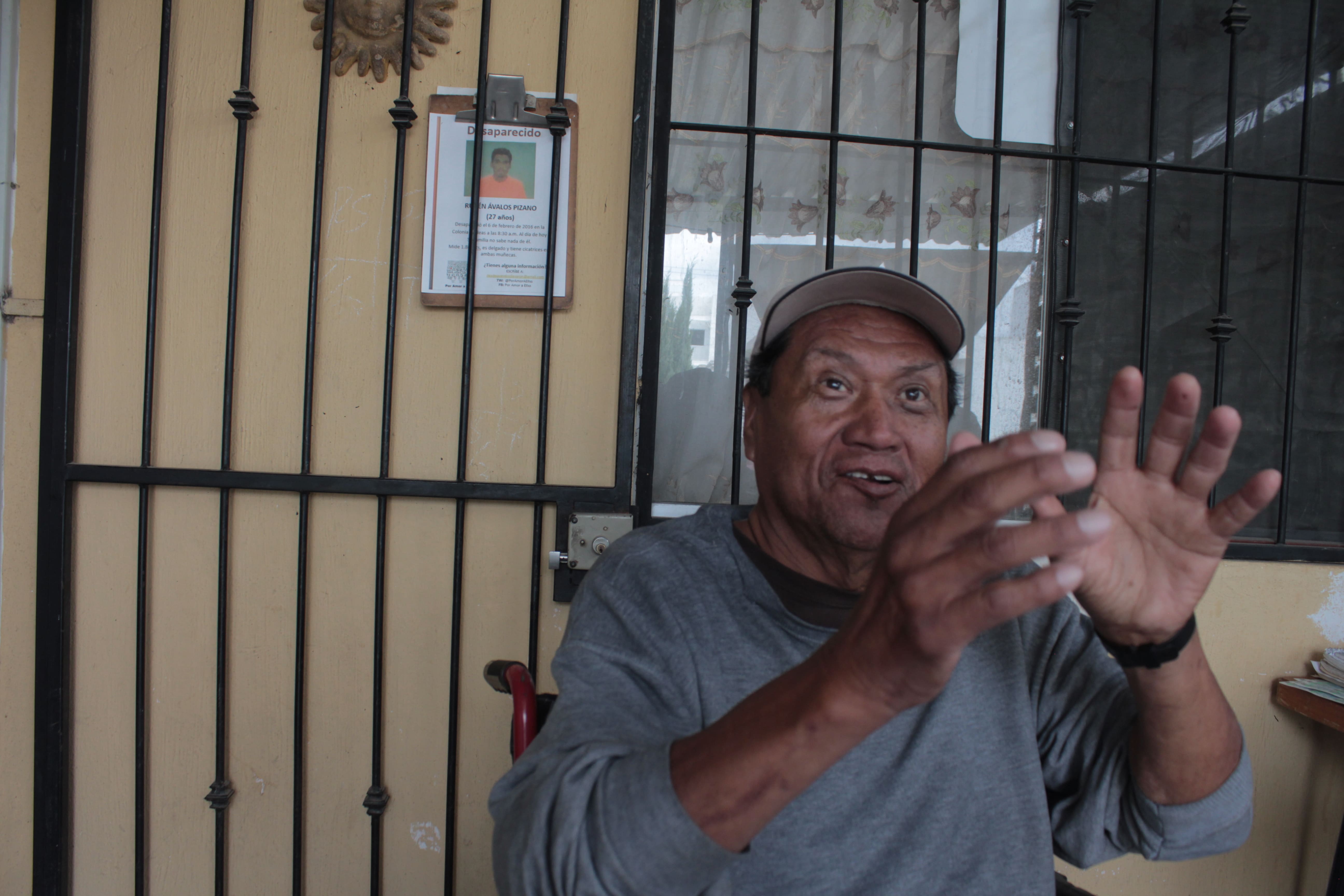 “El día seis de este mes, se cumplen ya dos años de desaparecido. De esta casa habitación salió el seis de febrero de 2016. Salió a las ocho y media de la mañana, y es tiempo y hora que no sé en lo absoluto nada de él; si vive, si come, si vistió y se cubrió como en este caso del frío. No hay ninguna autoridad que me haya informado o me informe al respecto qué está pasando con esta desaparición”, comenta don Rubén.