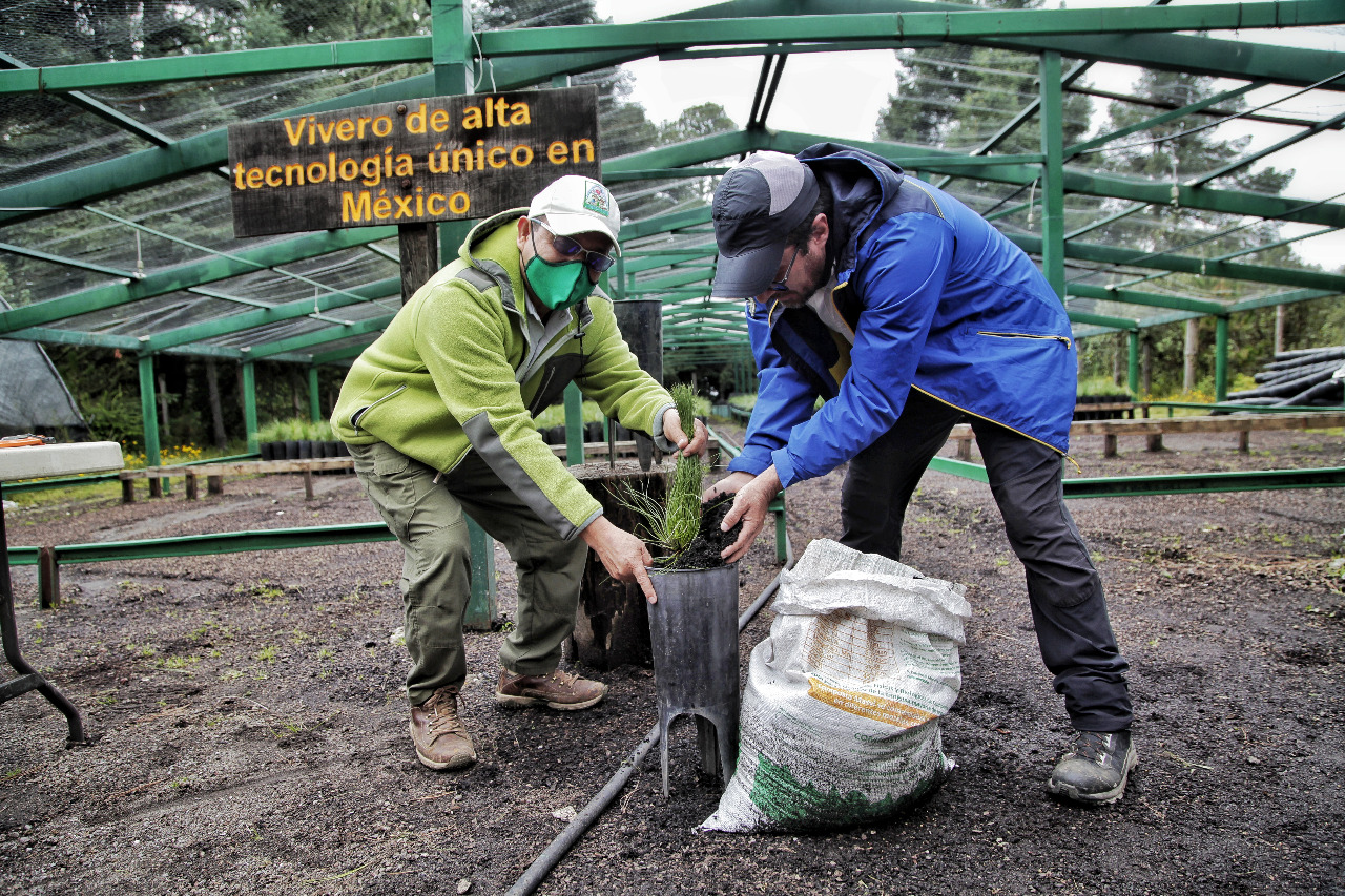 Desde su instalación a la fecha, se han producido y plantado 300 mil árboles de pino (Pinus hartwegii), para la restauración de áreas afectadas por plagas del Parque Nacional.