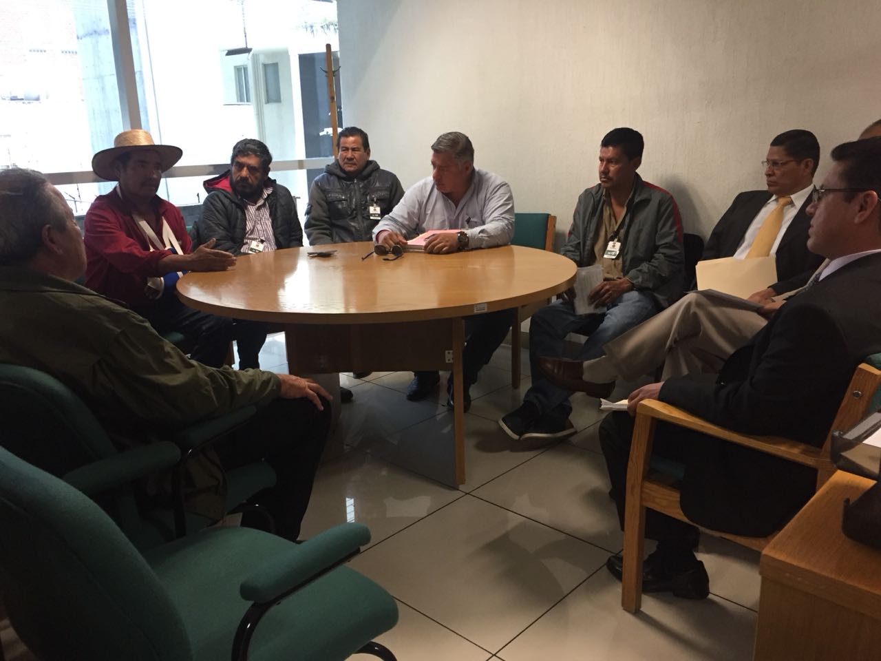 José Guadalupe Razo Islas, secretario general de acuerdos del TSA, escuchó las inquietudes de la comisión de ejidatarios que entraron a las instalaciones a dialogar y exponer su petición de no remover el Tribunal Agrario 53 de Zapotlán El Grande.