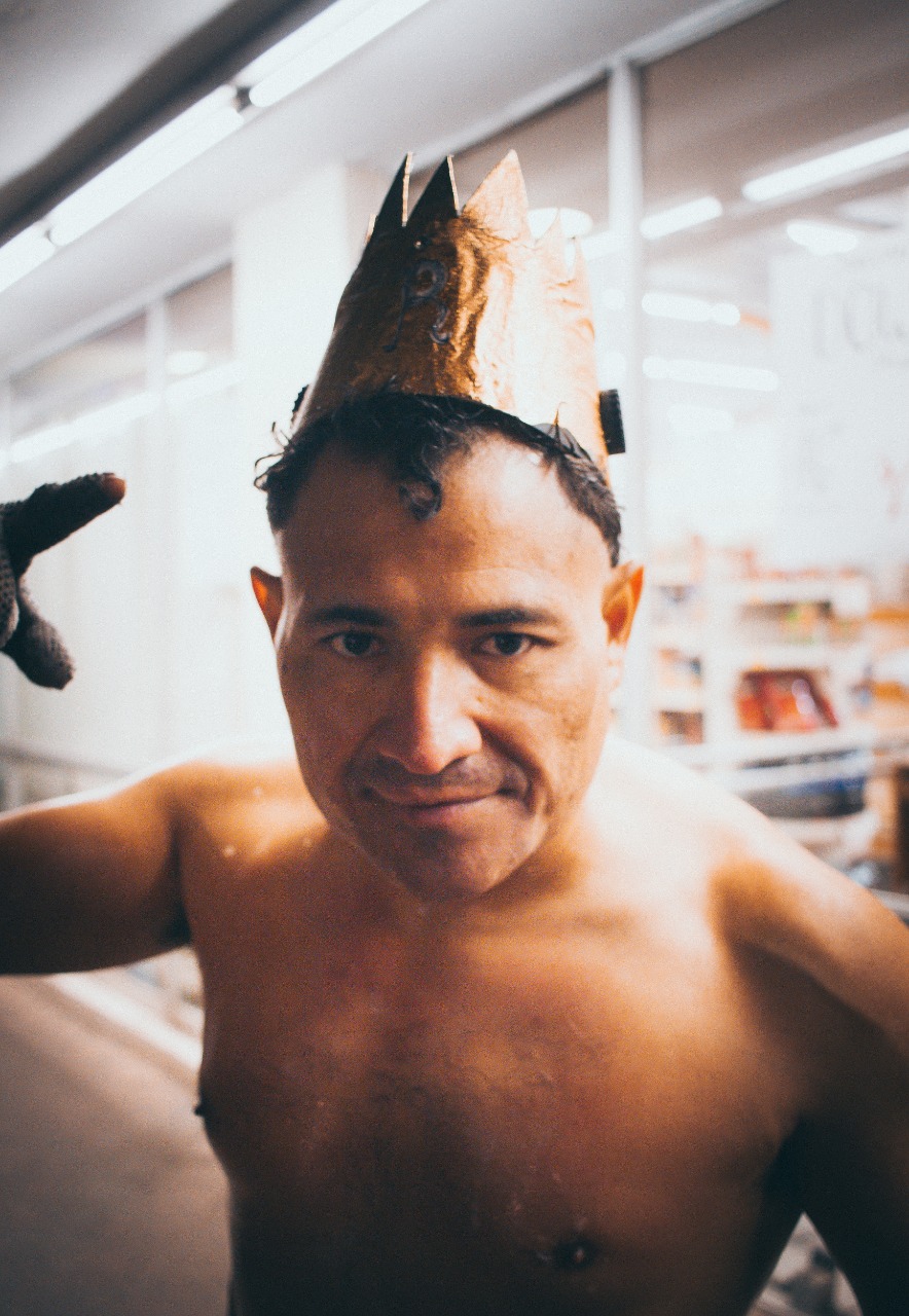 Se escuchan los gritos de las personas, los estéreos de los autos, los pitidos de los agentes de tránsito y las risas de los niños jugando en el jardín, al mismo tiempo Sergio lava las llantas. Cerca de él pasa una patrulla, por las banquetas caminan policías y el Rey sigue con su trabajo, nadie se lo impide.