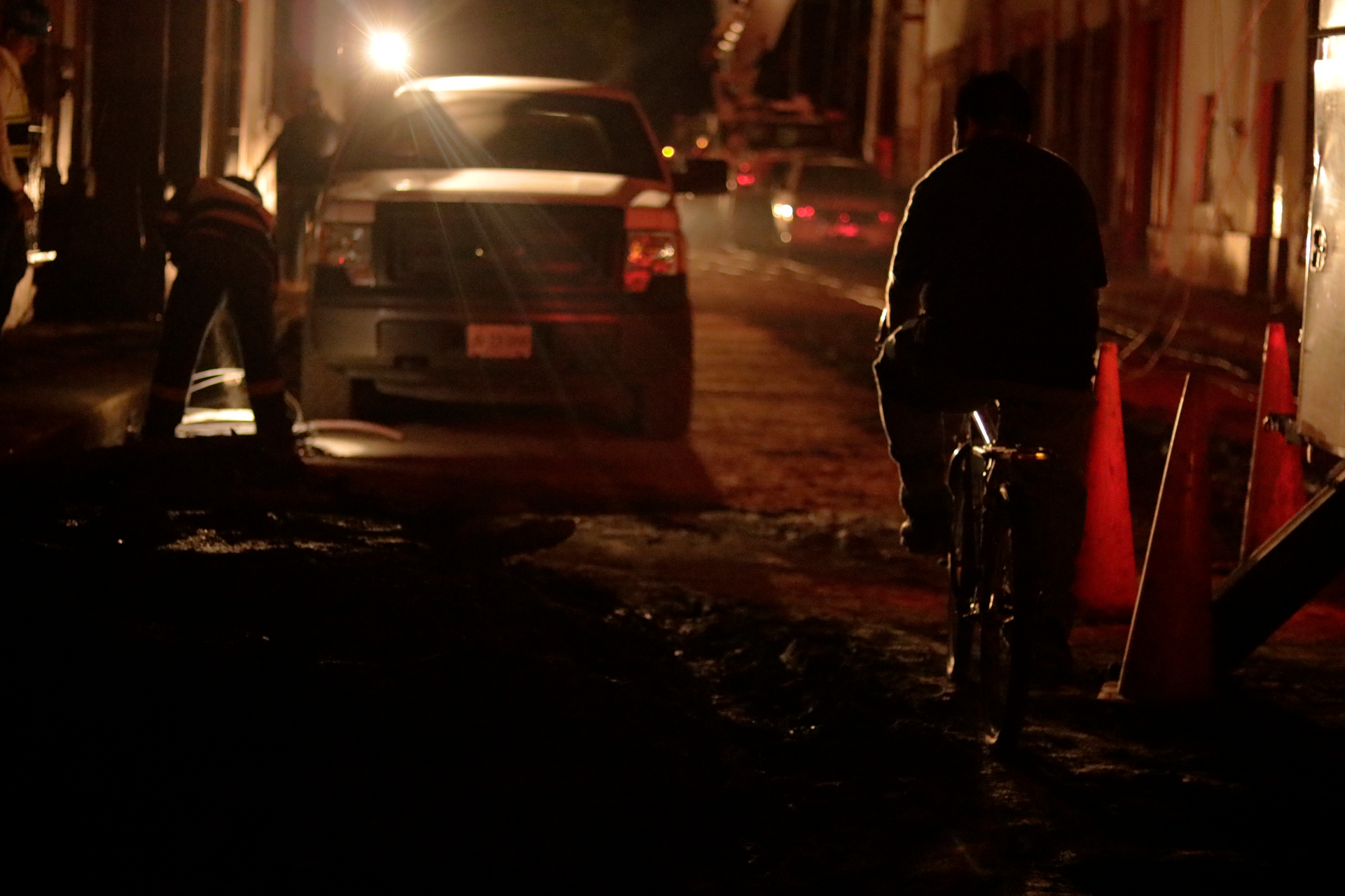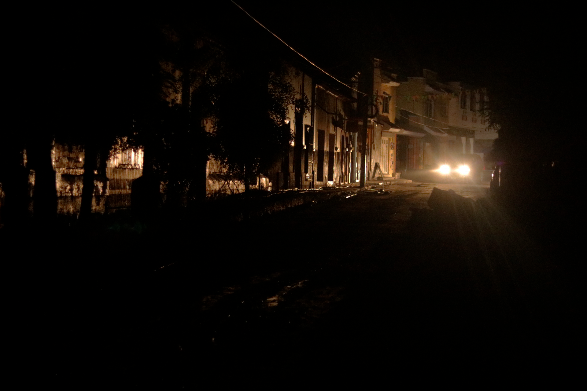 La noche sin luz hace que el silencio se apodere del ambiente. Casas con veladoras, el Personal de Comisión Federal de Electricidad no paran en su labor por restablecer la iluminación. Mientras el cuerpo de Protección Civil continúa con sus actividades.