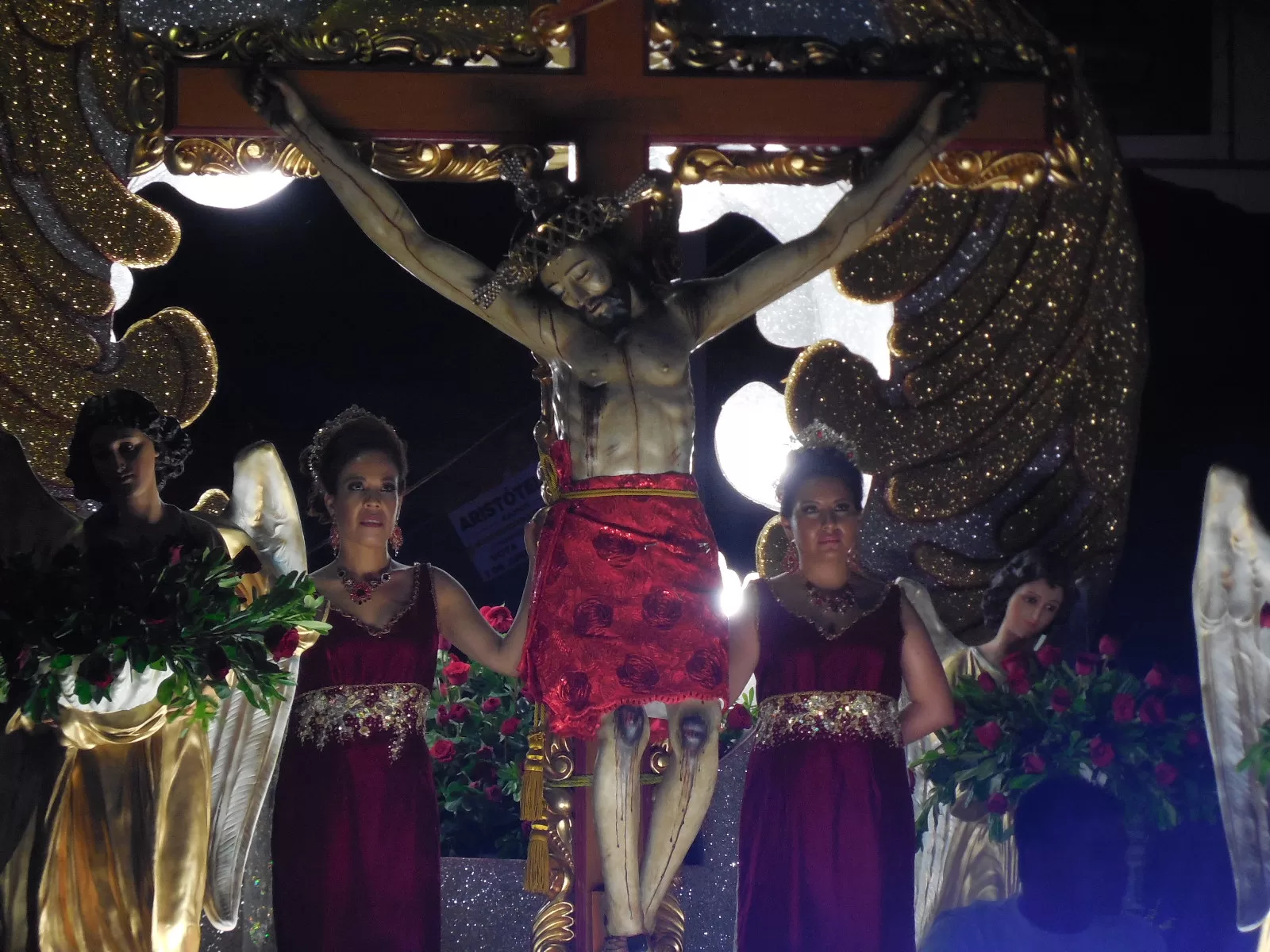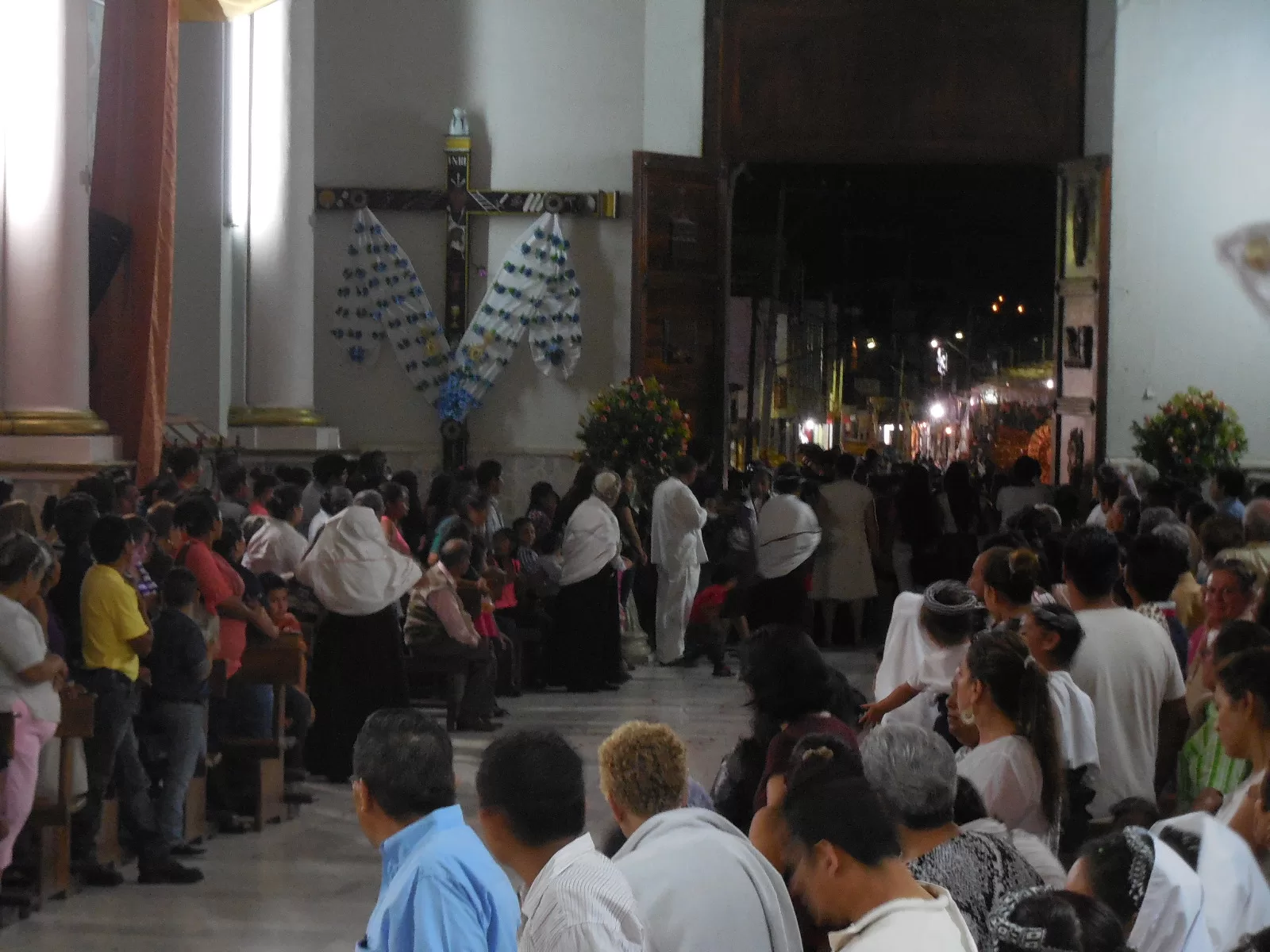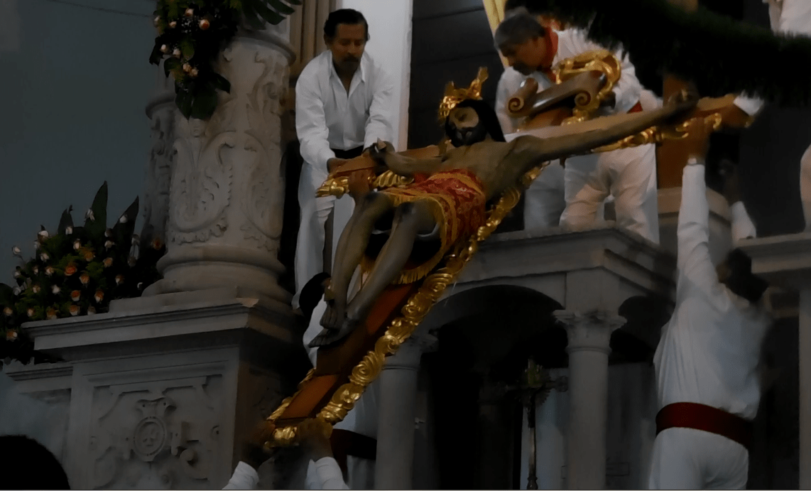 Por la noche, cerca de las 9, se realizó el descenso del Sr. Del Perdón de su altar. Los devotos ya esperaban ver a su preciada imagen entre ellos. La parroquia nuevamente lucía llena, no se podía pasar entre la gente, era casi imposible moverse de su lugar. La guardia de honor rodeaba el espacio central.