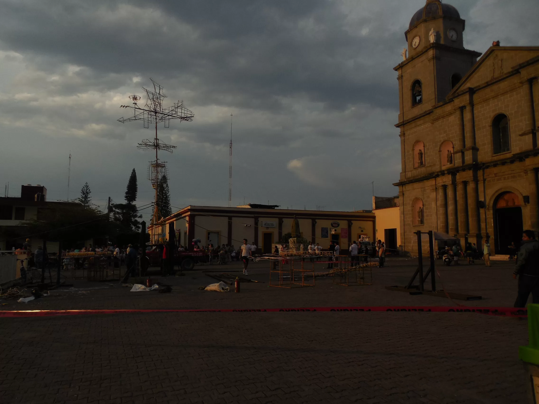 En el recorrido no pudieron faltar los bailes, las bebidas, la música y la gente. Al llegar al atrio parroquial, un castillo de alrededor de 19 metros de altura ya estaba instalado, enseguida montaron otros tres de menor altura que fueron colocados alrededor de la conocida Cruz Gorda.
