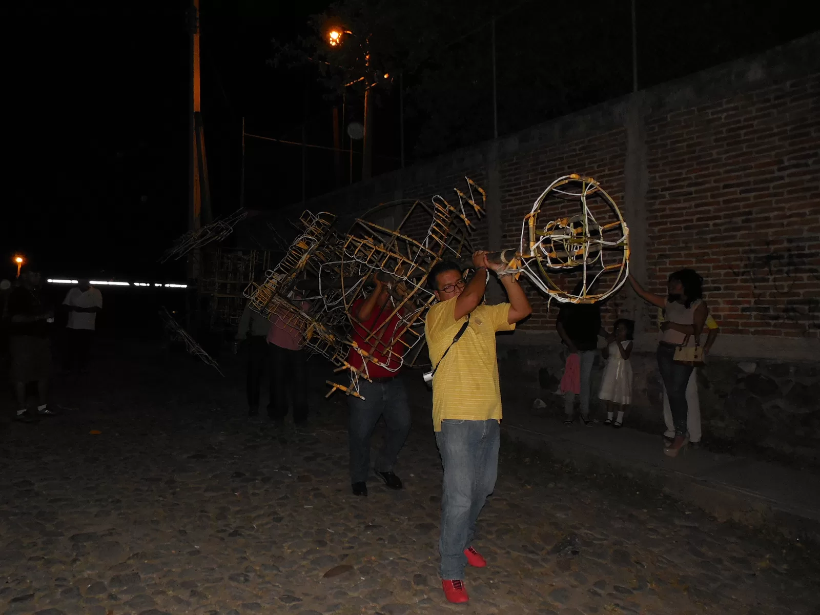 Posteriormente, alrededor de las 9 de la noche, las personas se comenzaron a reunir en diversos puntos de la ciudad para que al son de la banda, el mariachi o la chirimía, se realizara el típico recorrido para recoger los castillos donados para el día, partiendo de las casa de los donadores al lugar donde se entregaron los castillos y de ahí dirigirse al atrio parroquial, donde año con año se encienden los castillos.