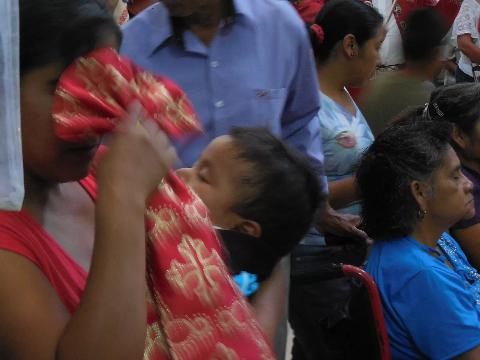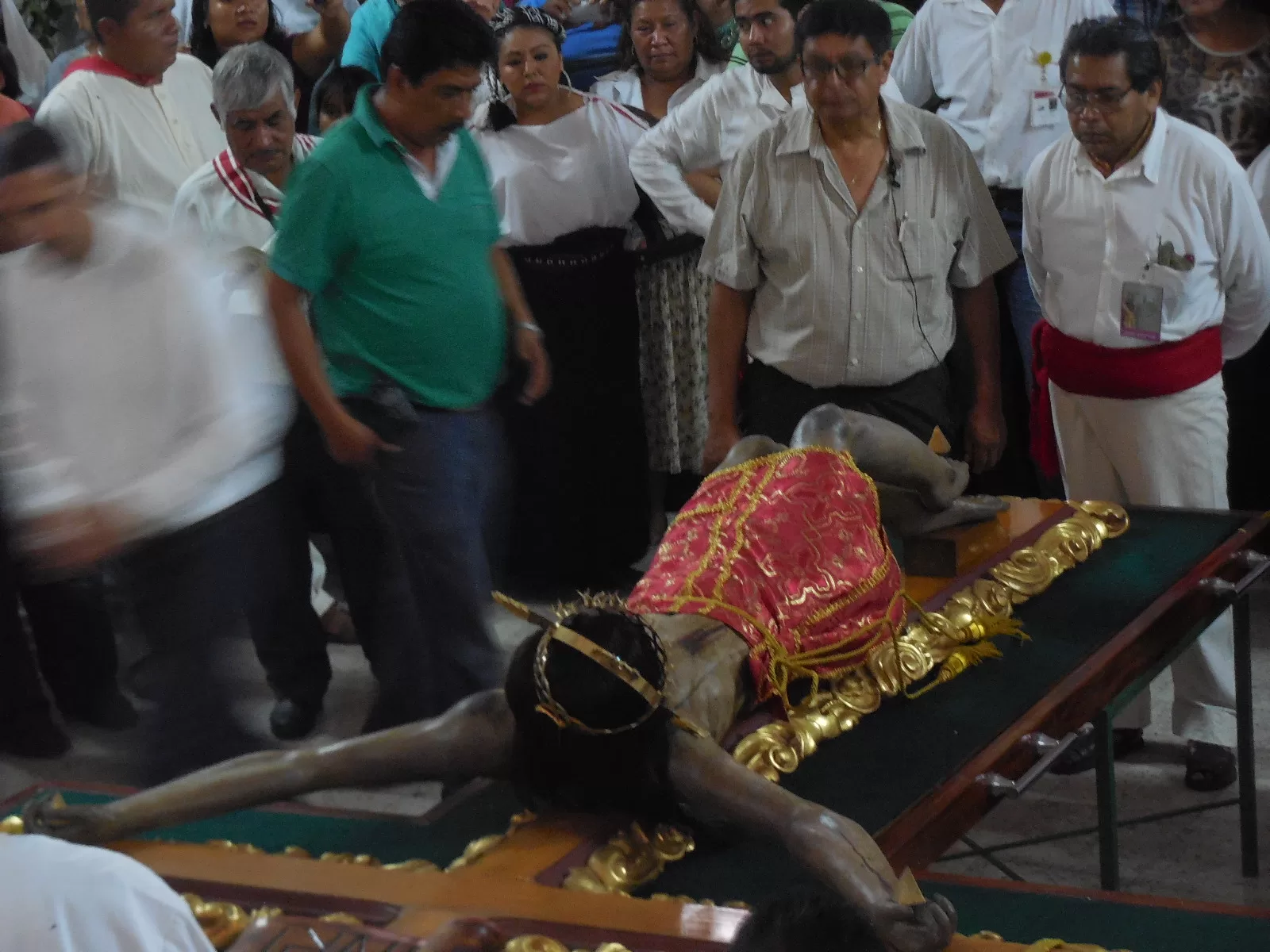 La fila fue larga. Con pasos delicados y pequeños personas de la tercera edad se acercaron inclinándose ante la prenda y besando la misa; mujeres con niños en brazos acercaban a los pequeños cubriéndolos con el cendal; hombres que con fe lo tocaban o lo colocaban en su cuerpo esperando sanación de sus enfermedades se inclinaban ante él.