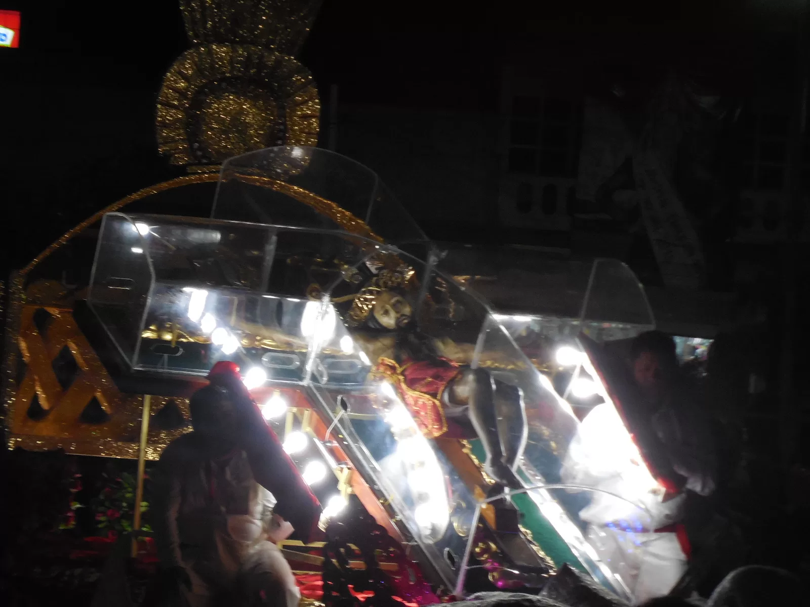 El trayecto concluyó a las 9 de la noche aproximadamente, cuando los carros alegóricos llegaron al atrio.