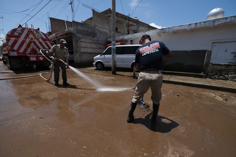 Desde ayer, tanto Protección Civil Jalisco como el gobierno municipal y brigadas ciudadanas, trabajan en la limpieza de las casas y calles.