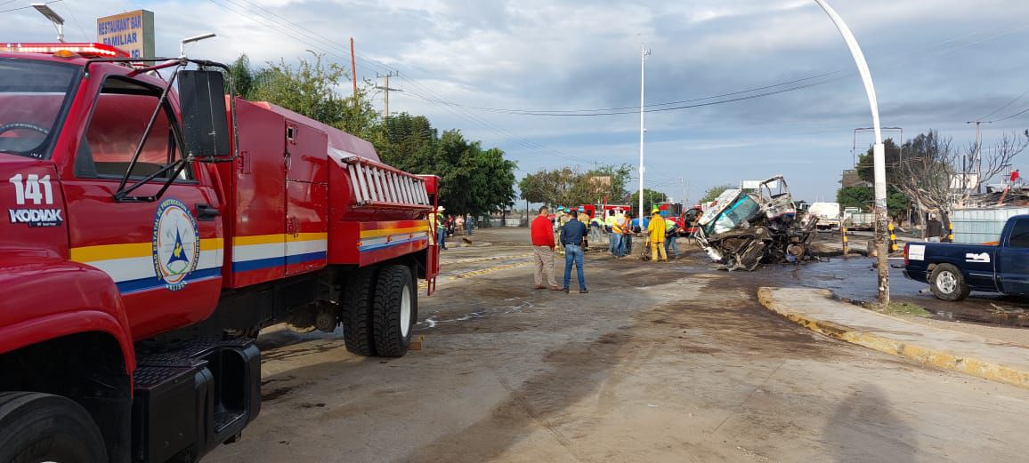 La Unidad Estatal de Protección Civil y Bomberos Jalisco confirmó que el incendio de una pipa que volcó en 4 Caminos en San Gabriel, afectó a 3 establecimientos del lugar.