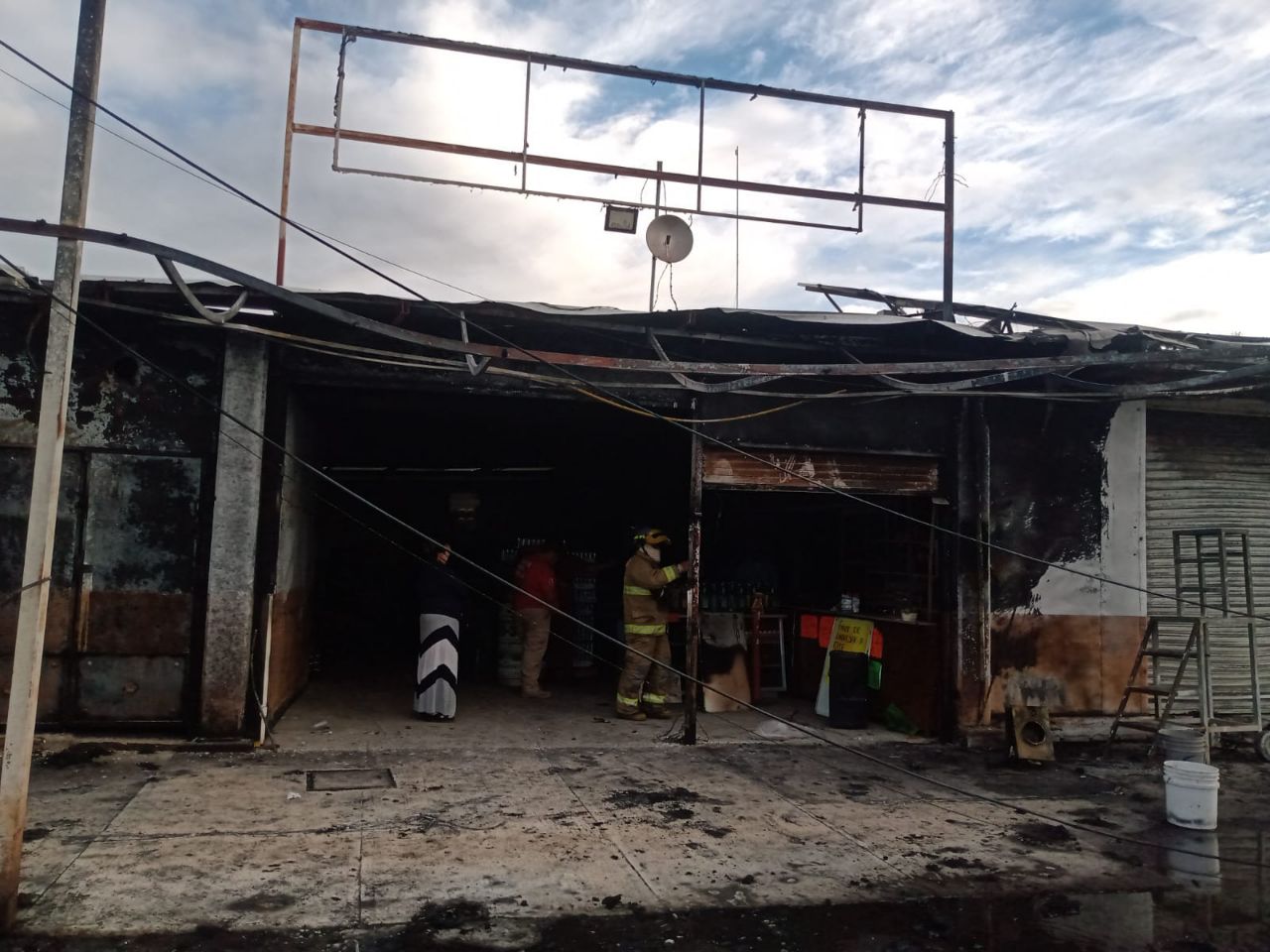 También, dos portones al lado de una tienda de autoservicio resulton quemados en su totalidad por se de madera.