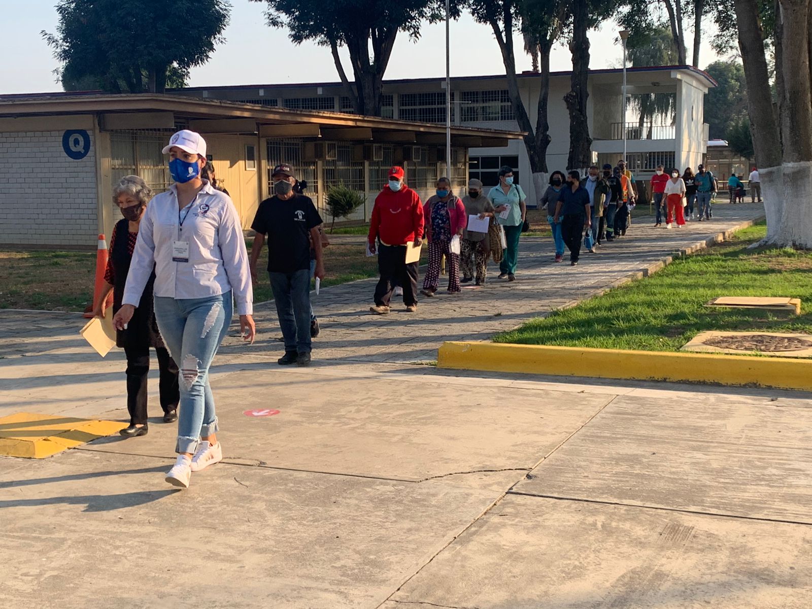La vacunación diaria inicia a las 8 de la mañana y finaliza a las 4 de la tarde. Piden a la población acudir con identificación oficial, curp y folio impreso de registro en la página de internet mivacuna.salud.gob.mx.