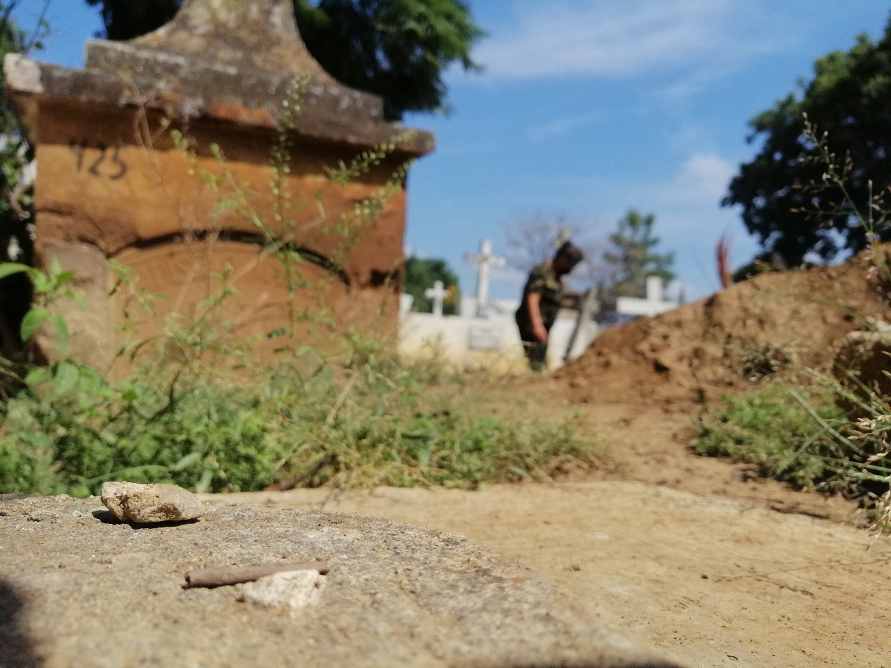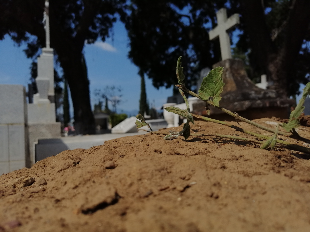 Pequeñas plantas nacen de un montículo de tierra que fue extraída de los alrededores de las tumbas.