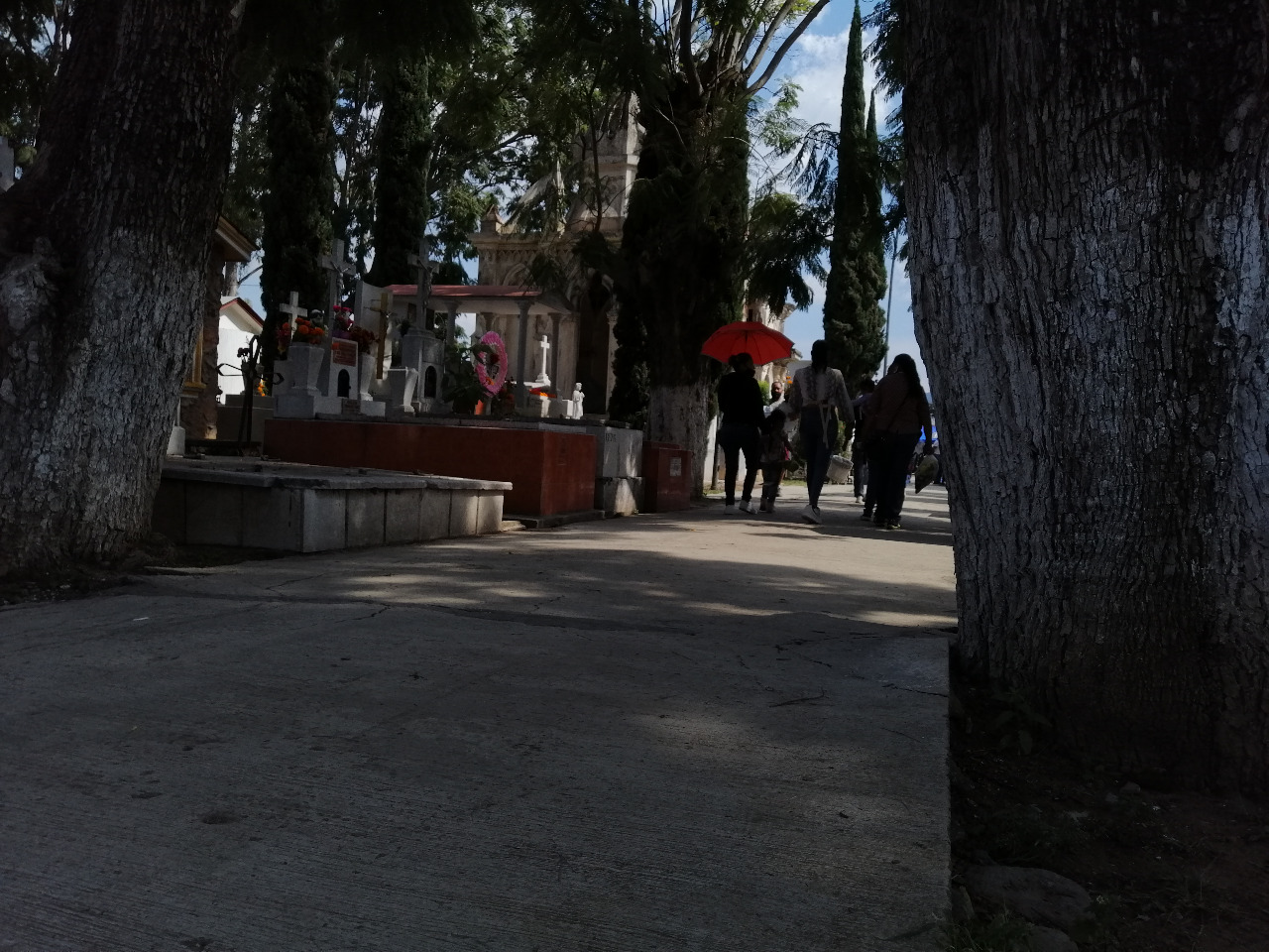 Es la hora en que fue tomada la fotografía. El crucero frente al panteón donde se conectan tres calles, mostraba la carga vehicular y el movimiento fuera del cementerio