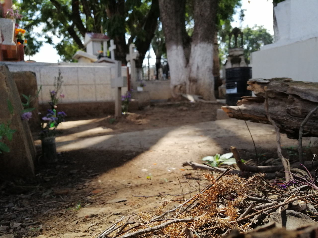 Esta tumba destacó por su ofrenda a ras de suelo. Cruces, arreglos florales y lápidas informaban la presencia de cuerpo