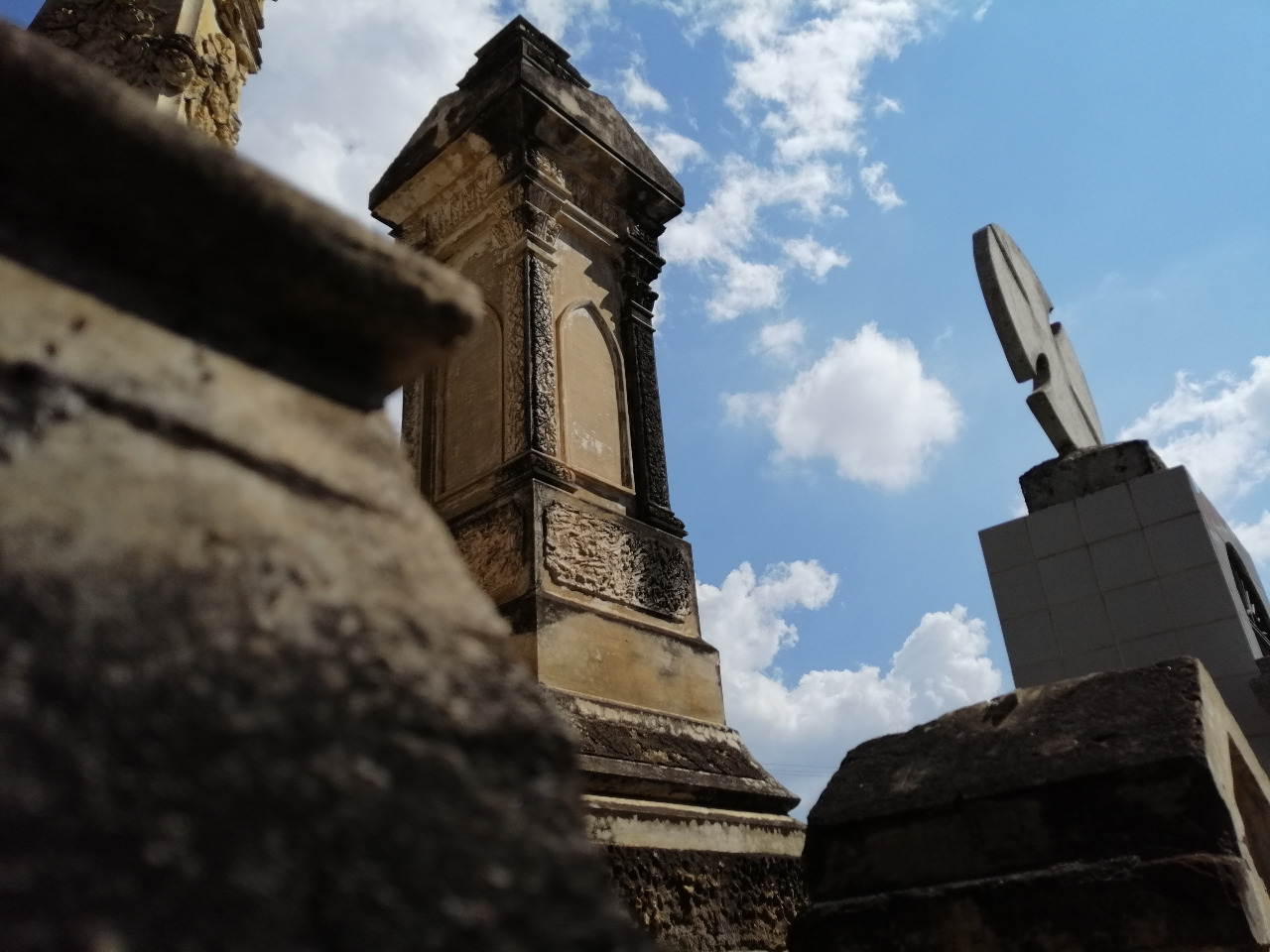 Estas columnas son en realidad tumbas verticales antiguas. Ubicadas a lado de una de las calzadas del cementerio. Restos que han sobrevivido al tiempo