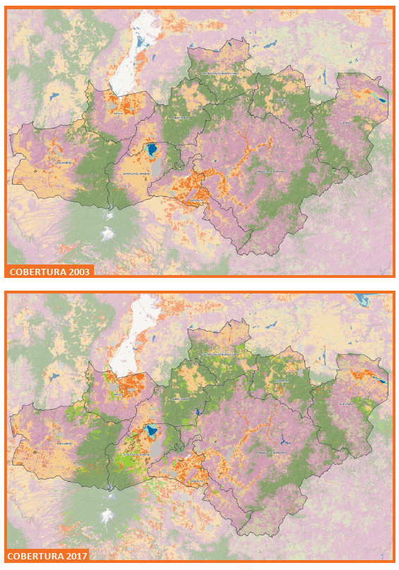 Los mapas del estudio que realizaron el Instituto de Información Estadística y Geográfica de Jalisco (IIEGJ) y el Fideicomiso del Programa de Desarrollo Forestal (Fiprodefo) muestran, con corte a 2017, que los bosques sobre el eje de la carretera San Gabriel-Sayula están ampliamente desmontados, y es necesario penetrar hacia el este, la llamada sierra de la Media Luna, para regresar a bosques tupidos e incomunicados.