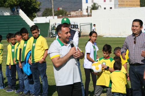 Previo al partido realizaron la reinauguración donde estuvo presente el presidente Alberto Esquer. En este acto se llevó a cabo la presentación de los equipos de categorías inferiores de Mazorqueros, la presentación de la mascota del equipo y Esquer dio unas palabras al público para después realizar la patada de honor. Esta ceremonia de reinauguración concluyó con los honres a la bandera.