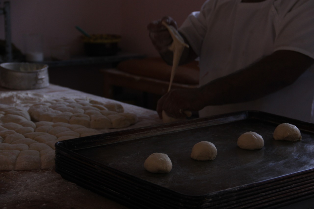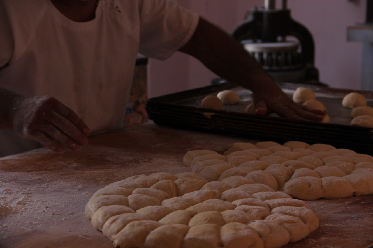“Una pieza de pan pues que te tardas, o sea que más bien lo tardado sería la revoltura, el hacer la masa, y esperar a que esté lista. Porque no es nada más revolver los materiales y ya ponerme a hacer el pan. No, tienes que revolver la masa y dejarla su tiempo, su fermento. Ya una vez fermentada pues 100 piezas las hacen en 20 minutos”.