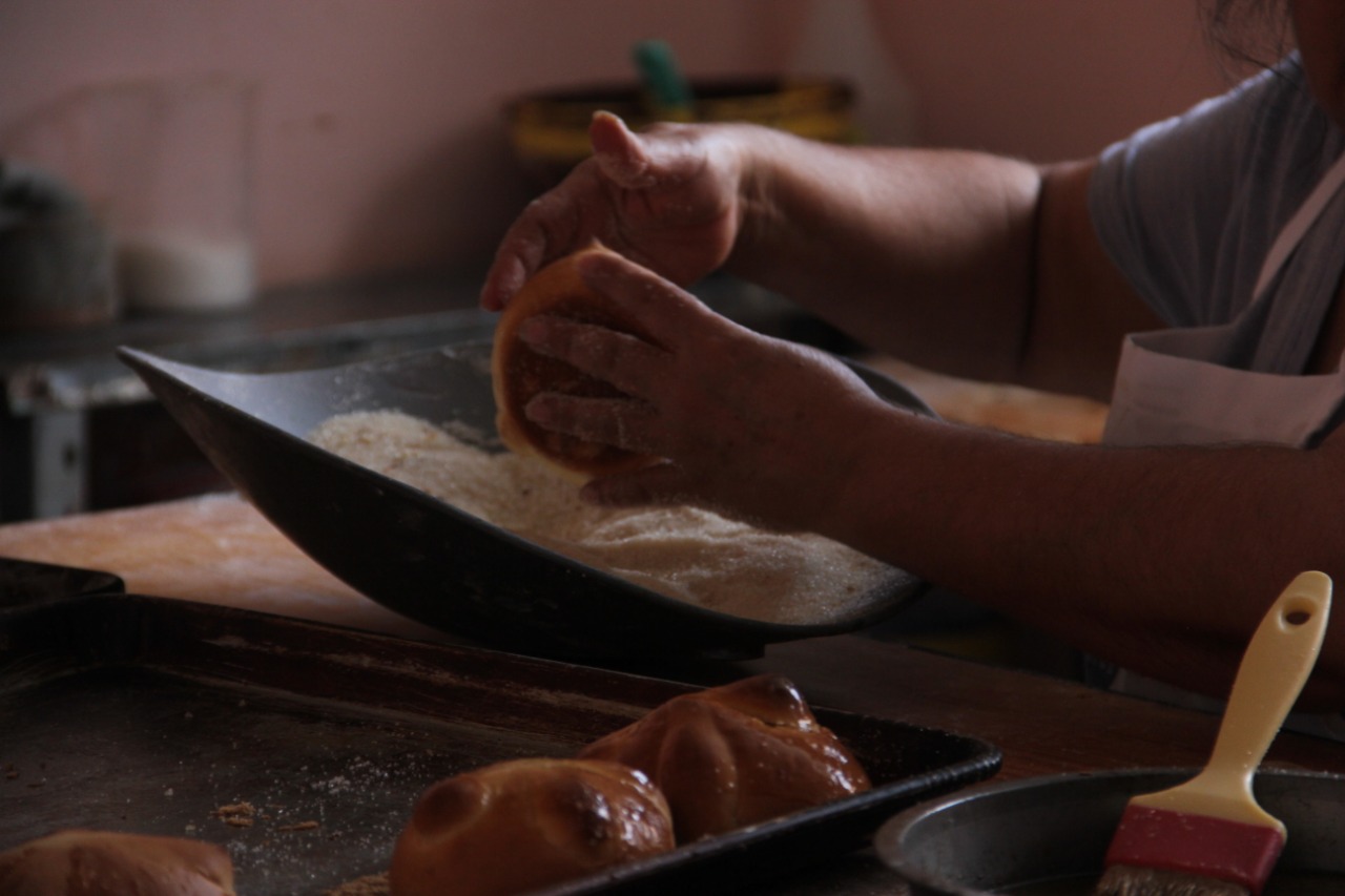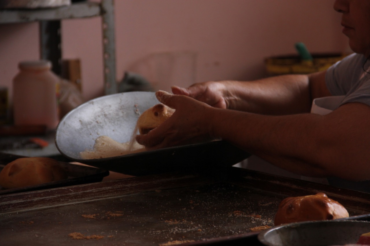 El señor Misael narró que lo importante de la elaboración del pan de muerto está en dejar reposar la masa, ya que haciendo el pan no se tarda demasiado.