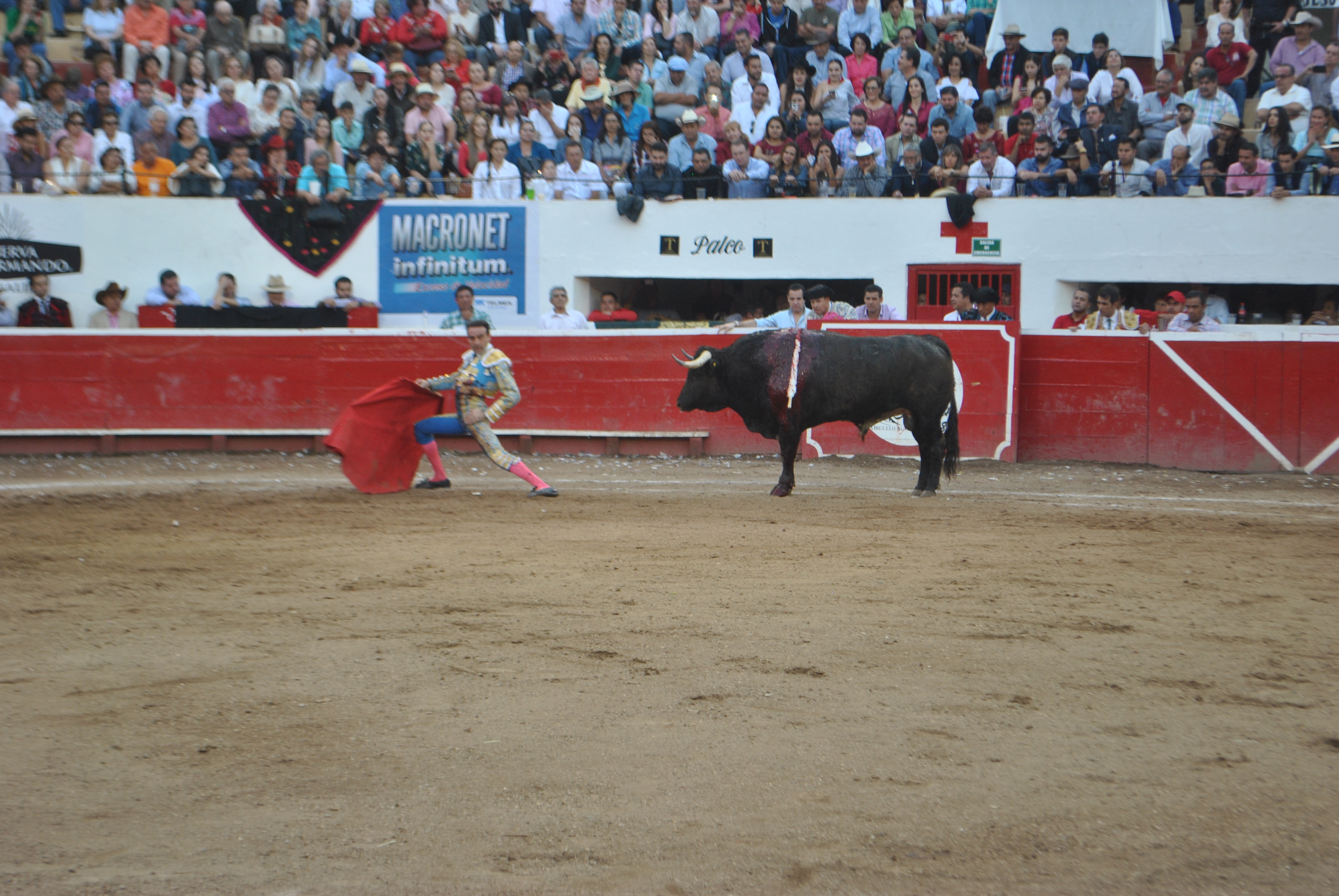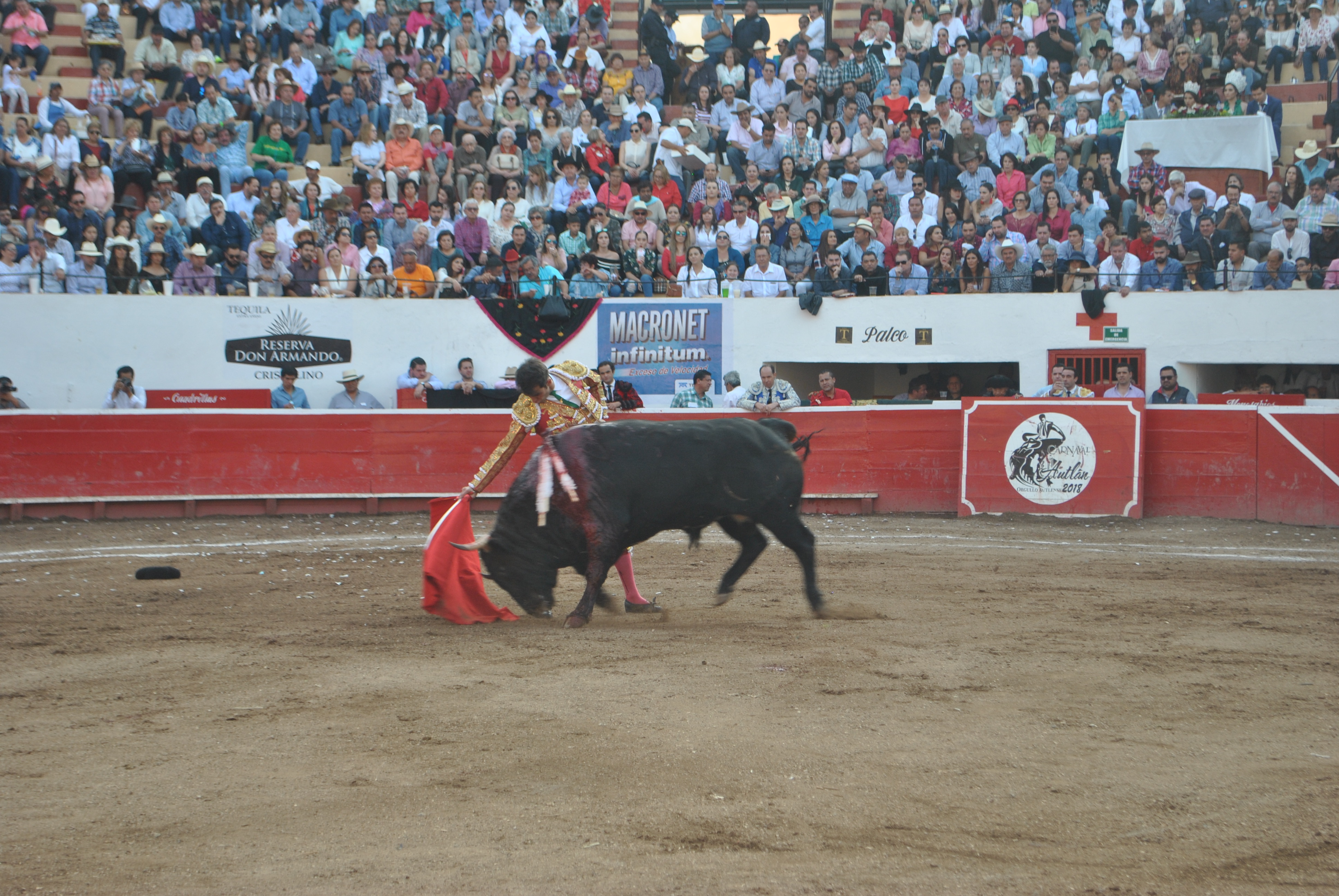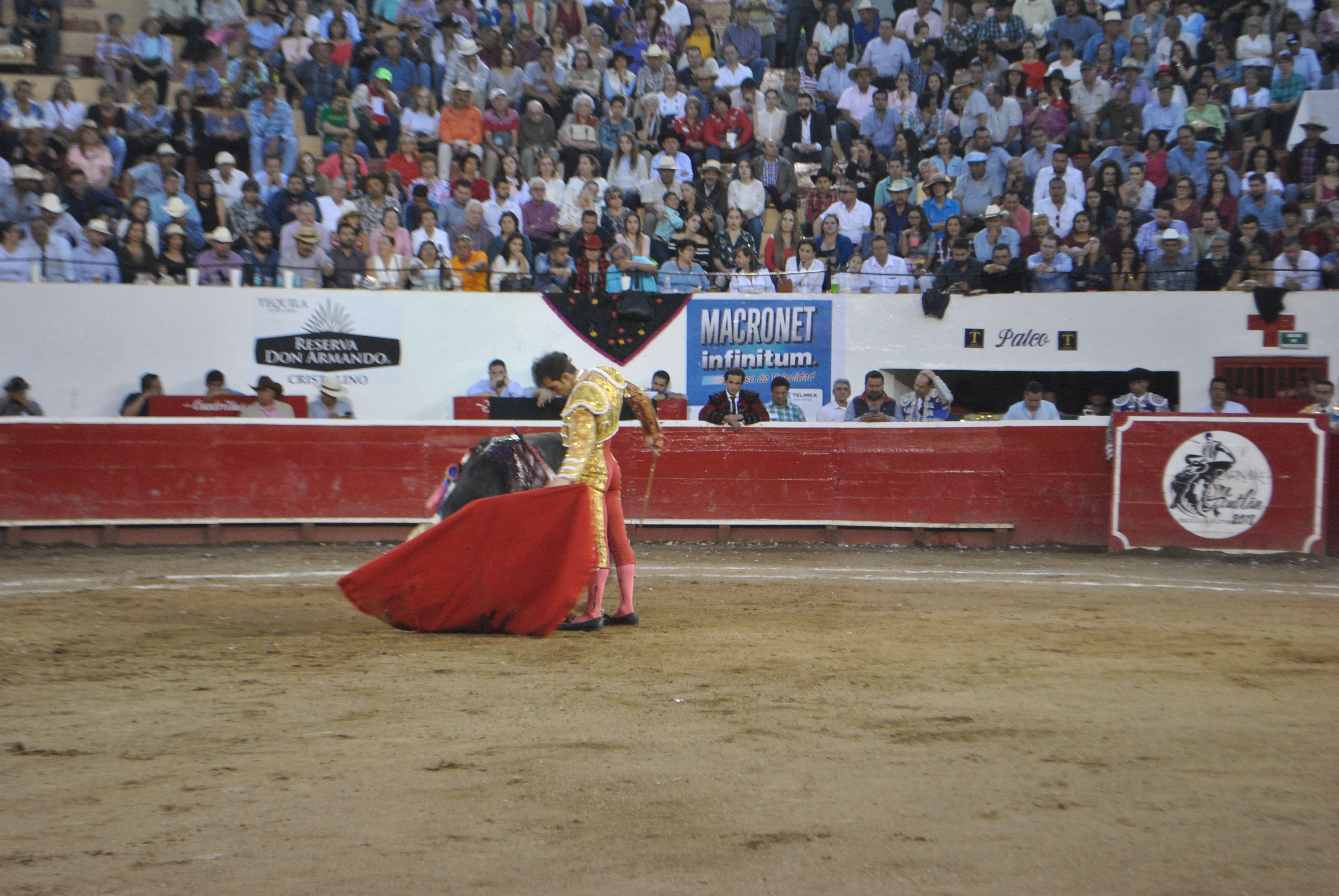Arturo Macías, de sangre de toro y oro, es uno de los principales toreros mexicanos de la actualidad y vive un momento importante de maduración, llegaba de triunfar en la Plaza México un día antes, cosa que también buscaría en Autlán. El primero de su lote, Nenito de 489 kilos, empujó bien al caballo, incluso derrumbando al picador pero que no pasó a mayores. Arturo lo toreó con experiencia, el astado no estaba sobrado de fuerza pero no descatimó en embestir. El carisma del nacido en Aguascalientes ayudó para llegarle al público y cuajar una interesante faena. Perdió el trofeo al pinchar pero también fue invitado a saludar al tercio.