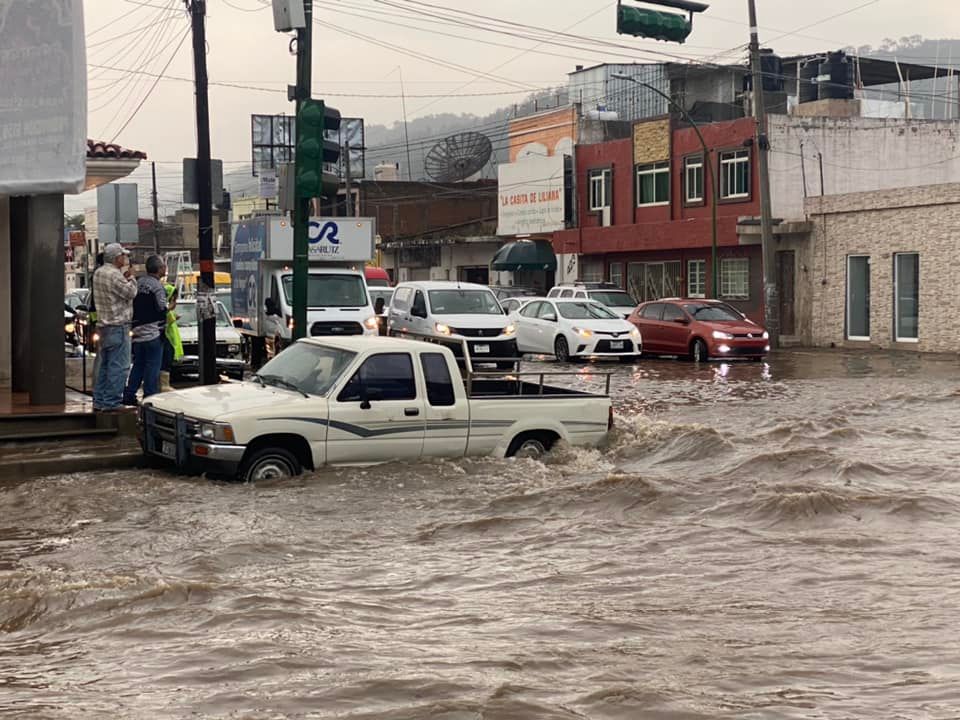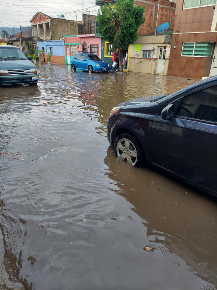 Por ejemplo, la calle Leona Vicario presentó inundaciones y la creciente arrastró vechículos. Los habitantes reportan que el agua subió a la banqueta, pero no ingresó a los domicilios.