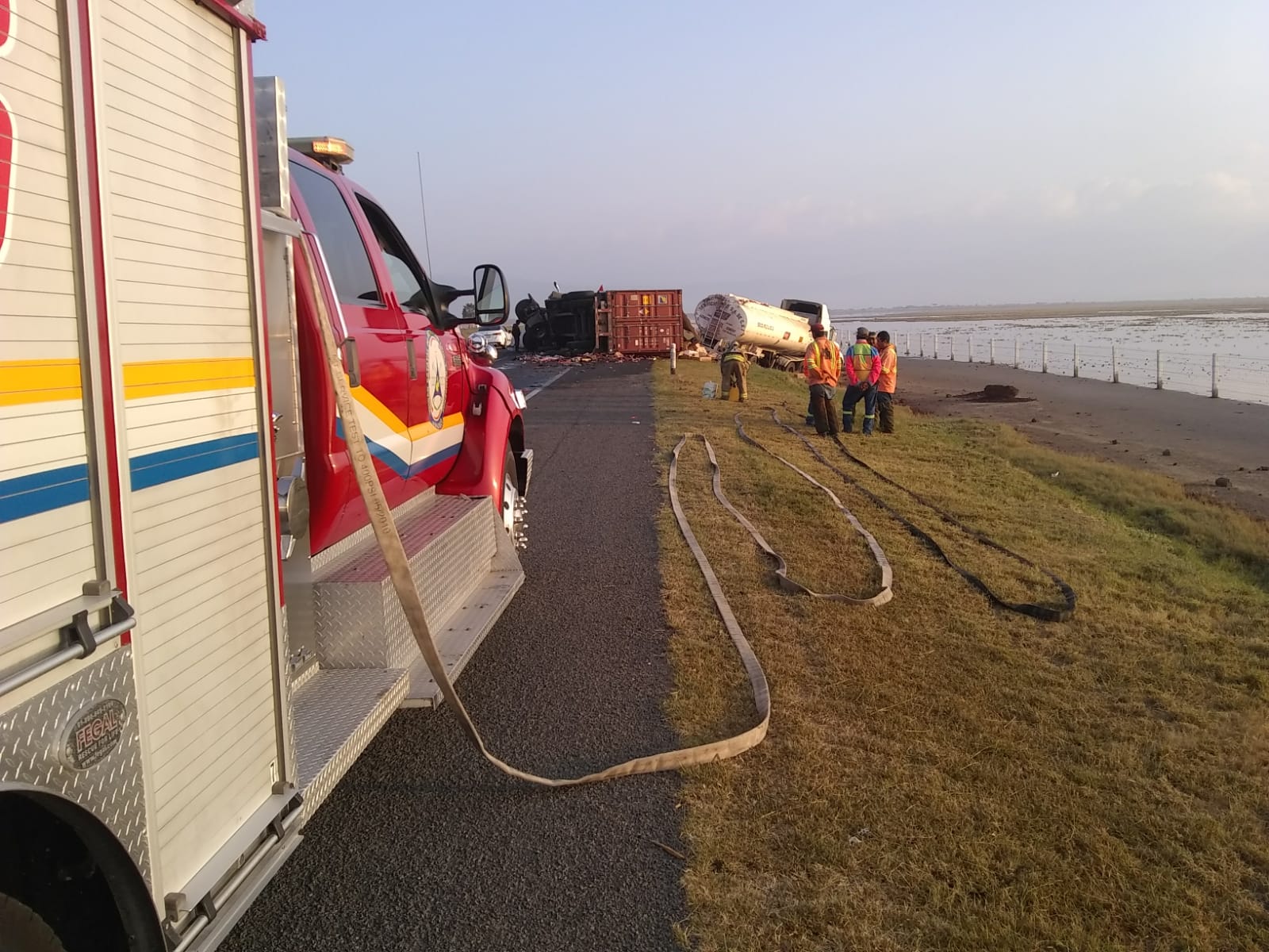 Esta mañana la Unidad de Protección Civil y Bomberos de Jalisco atendieron un choque por alcance entre un tráiler y una pipa que transporta gasolina