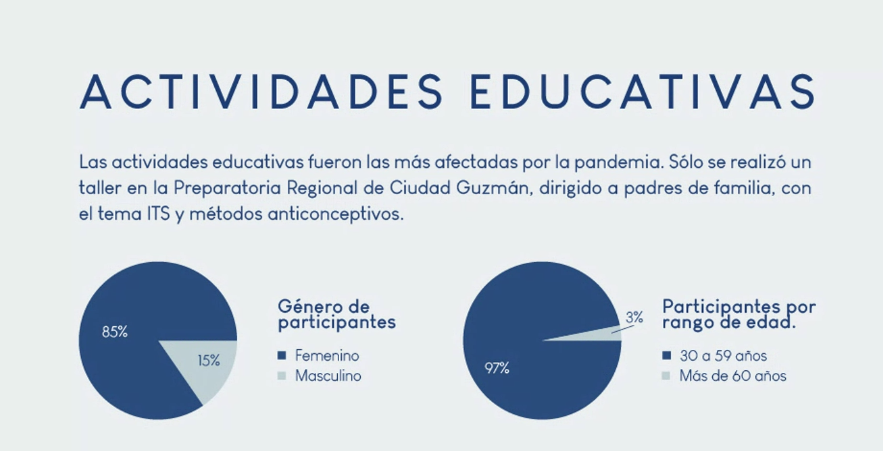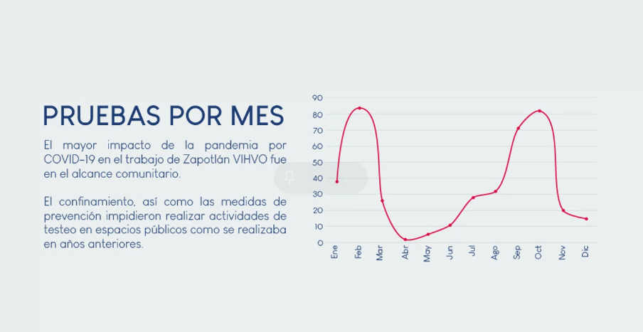 Así mismo en 2020 lograron aplicar 402 pruebas rápidas de detección de VIH y Sífilis. Sin embargo, la pandemia y el confinamiento limitaron los testeos en espacios públicos como los jardines principales de los municipios del Sur de Jalisco y las instituciones educativas.