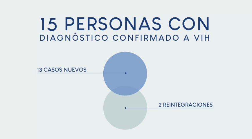 De los 15 casos de VIH 12 iniciaron su proceso de atención, dos decidieron no atenderse y una persona falleció. Además, tres de esos casos también dieron positivo a sífilis.